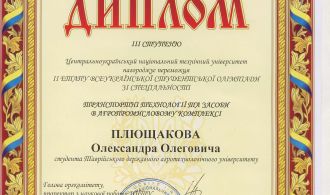 В Центральноукраїнському національному технічному університеті (м. Кропивницький) на базі кафедри “Експлуатації та ремонту машин” з 17 по 19 квітня 2019 року відбувся II етап Всеукраїнської студентської олімпіади зі спеціальності «Транспортні технології та засоби в агропромисловому комплексі». Таврійський державний агротехнологічний університет представляв студент 13 МБ АІ механіко-технологічного факультету Плющаков Олександр Олегович (керівник д.т.н., професор Панченко А.І.). Олександр […]