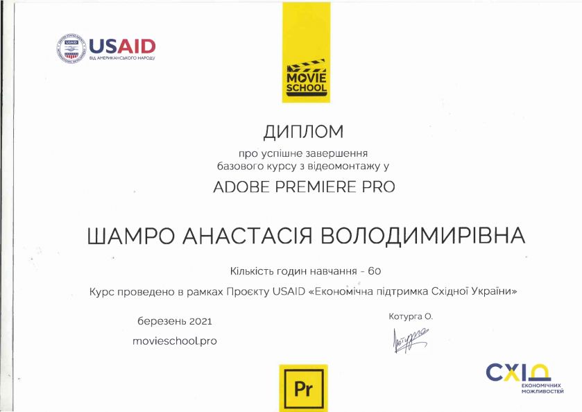 В навчанні взяла участь інженер кафедри МСТТ Шамро Анастасія. За підсумком навчання базовому монтажу в Adobe Premiere Pro було пройдено тестування та отримано сертифікат, що підтверджує її нову кваліфікацію. (Детальніше…)