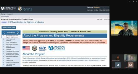 За підсумками перебування, Максим Колесніков представив презентацію, за допомогою якої всі бажаючі на факультеті змогли ознайомитись з з інформацією щодо підготовки до участі у програмі та перебування в університеті штату Огайо (США).