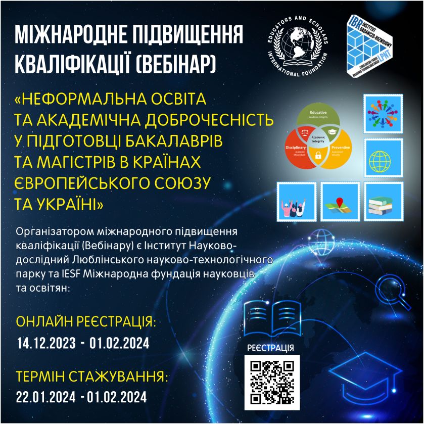 Термін міжнародного підвищення кваліфікації (Вебінару) – 22 січня по 01 лютого 2024 року м. Люблін (Республіка Польща)