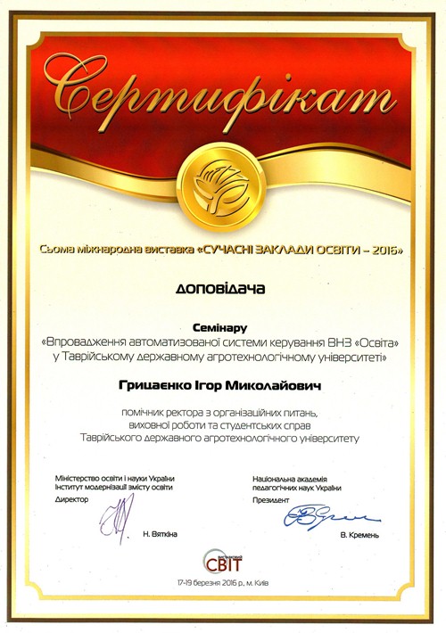 Міжнародні виставки «Сучасні заклади освіти – 2016» та «World Edu-2016»: ТДАТУ – «ЛІДЕР МІЖНАРОДНОЇ ДІЯЛЬНОСТІ»