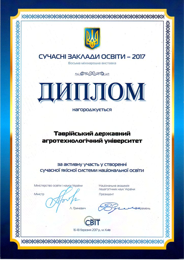 Міжнародні виставки «Сучасні заклади освіти – 2017» та «World Edu-2017»: ТДАТУ – «ЛІДЕР ВИЩОЇ ОСВІТИ УКРАЇНИ»
