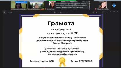 У Таврійському державному агротехнологічному університеті імені Дмитра Моторного традиційно проводяться святкові заходи: нагородження найкращих студентів ректором університет та великий концерт.