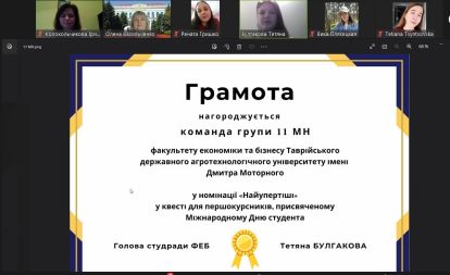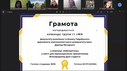 Тетяна оголосила результати квесту першокурсників, що відбувся напередодні.