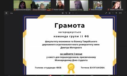 • Група 21-МБ МК (староста Вікторія Плясецька, куратор д.е.н., професор Дар’я Легеза Д.Г.) – краща група за підсумками 2021-2022 н.р.