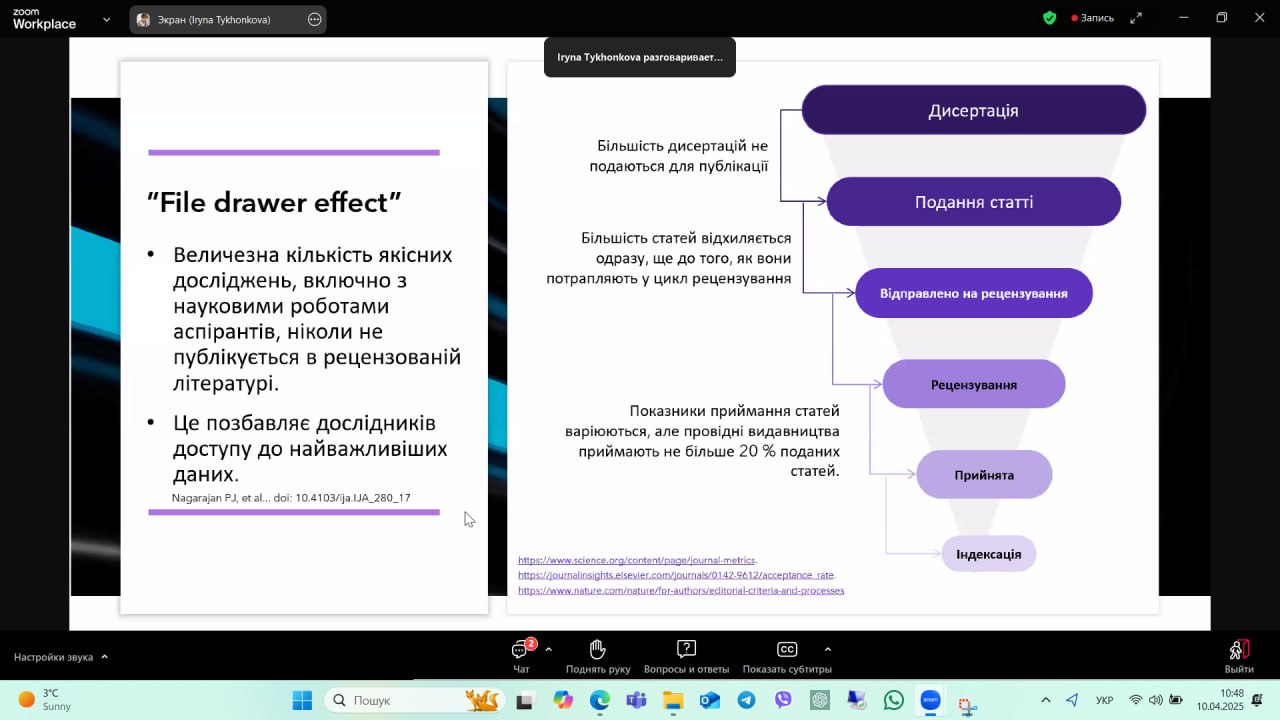 Також піднімалися питання правильного оформлення бібліографічних посилань згідно міжнародних стандартів, вибору журналів для публікації статей за матеріалами дисертацій, розробки ефективної стратегії популяризації результатів досліджень.