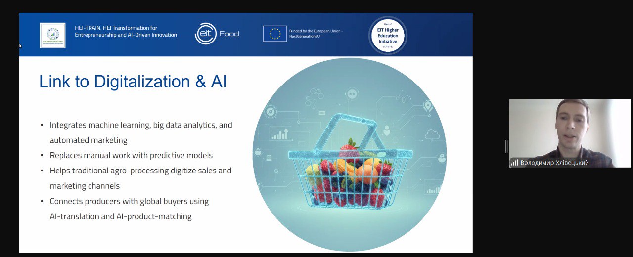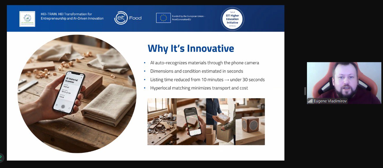 Аспіранти кафедри маркетингу взяли участь у міжнародному конкурсі стартапів, що проводився в межах програми EIT HEI-TRAIN (HEI Transformation for Entrepreneurship and AI-Driven Innovation). Захист стартап-проєктів відбувся в місті Рига (Латвія) у дистанційному форматі на платформі Zoom та об’єднав учасників із різних країн, які працюють над інноваційними рішеннями у сфері підприємництва та штучного інтелекту.