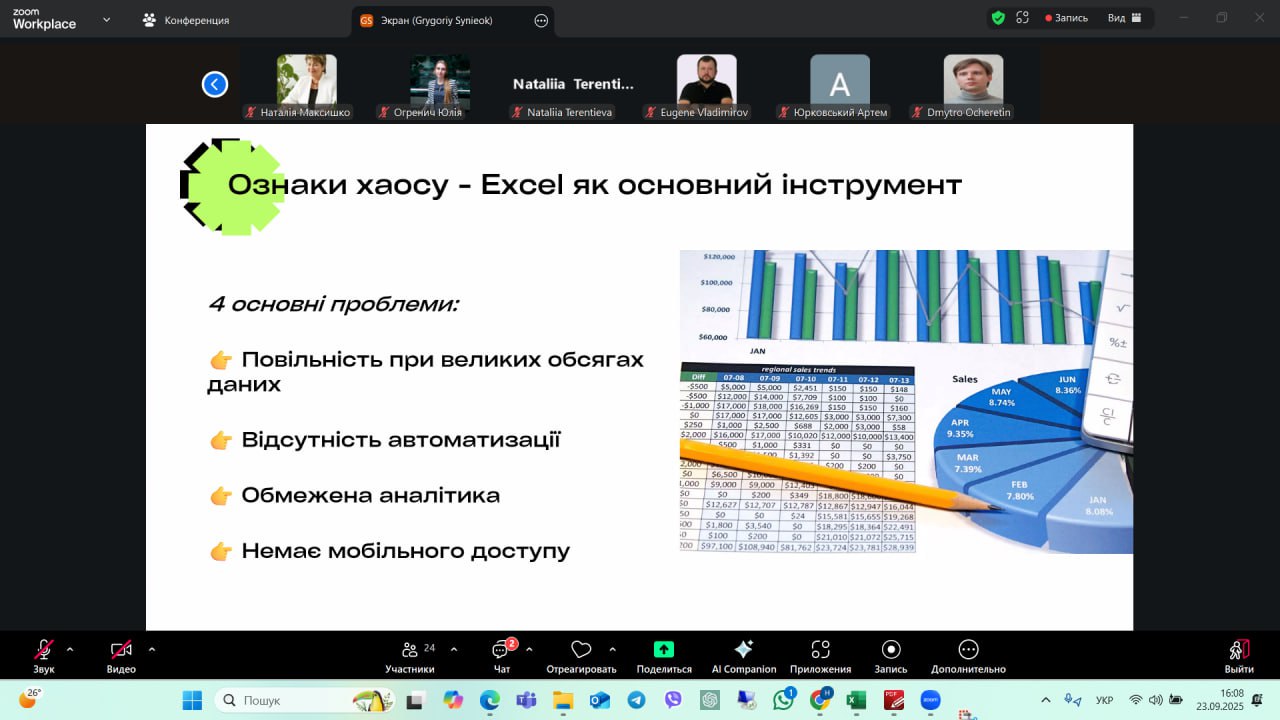 Учасники обговорили типові проблеми, з якими стикаються компанії на етапі використання Excel як основного інструменту: повільність роботи з великими обсягами даних, відсутність автоматизації, обмежена аналітика та відсутність мобільного доступу. Спікер акцентував увагу на важливості системного підходу до управління бізнесом та показав, як сучасні CRM-рішення можуть усунути хаос у роботі компаній.