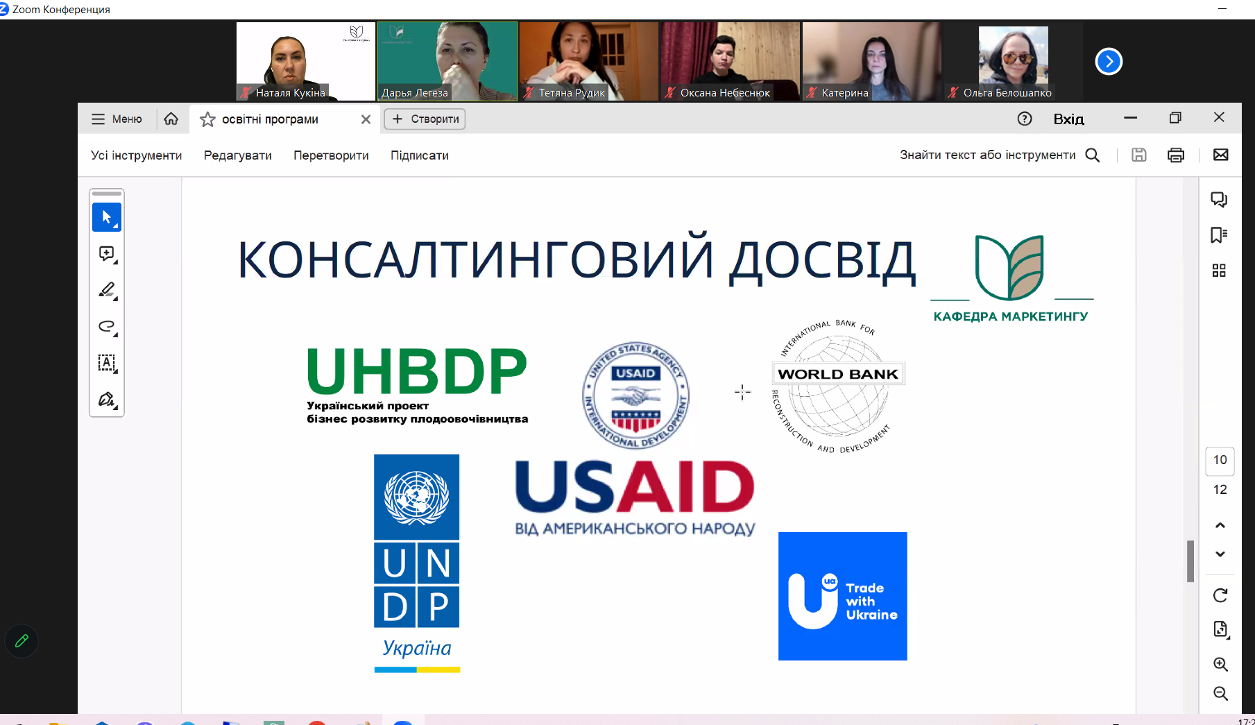 На зустріч зі здобувачами освіти заочної форми навчання також доєдналися викладачі університету, що викладатимуть протягом 1-го семестру дисципліни загальної та професійної підготовки спеціальності «Маркетинг». Кожний викладач коротко представив себе і свій курс, зробивши акцент на цікавих аспектах свої дисциплін.
