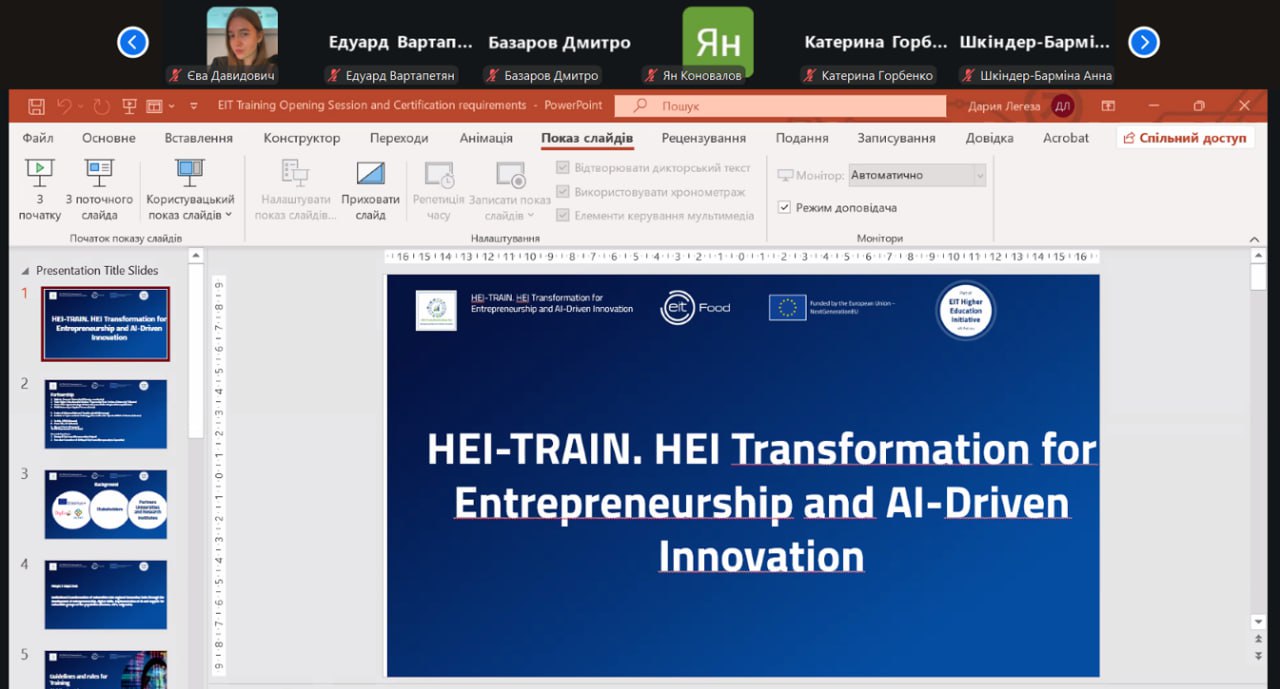 Здобувачі вищої освіти четвертого курсу навчання спеціальності «Маркетинг» беруть участь у міжнародному освітньому проєкті HEI-TRAIN. HEI Transformation for Entrepreneurship and AI-Driven Innovation, який реалізується за підтримки EIT Food.