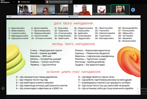 Святкування Дня маркетолога онлайн стало не лише розважальною подією, а й об’єднавчим заходом, що підкреслив єдність та дружбу всередині кафедри. Студенти продемонстрували креативний підхід, відмінну командну роботу та справжню любов до своєї професії. Це свято залишило в серцях учасників яскраві враження, надихнуло на подальший розвиток і згуртувало молодих маркетологів на шляху до майбутніх звершень.