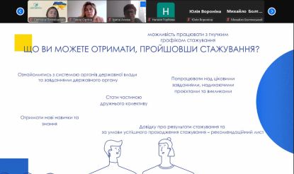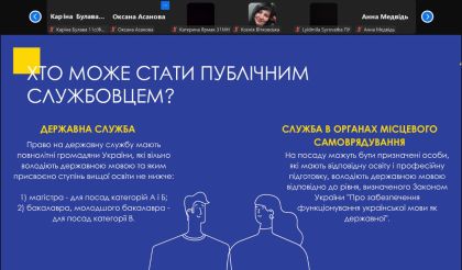 Спікером виступив Андрій Баткалов – керівник експертної групи НАДС, який окреслив можливості молоді у сфері публічної служби, вимоги до майбутніх державних службовців, а також розповів про основні цінності, якими керується державна служба: професіоналізм, доброчесність, відкритість, служіння суспільству. Презентація включала також розвінчання поширених стереотипів про держслужбовців, статистику працевлаштування молоді, приклади стажувань та освітні ресурси для майбутніх кандидатів.