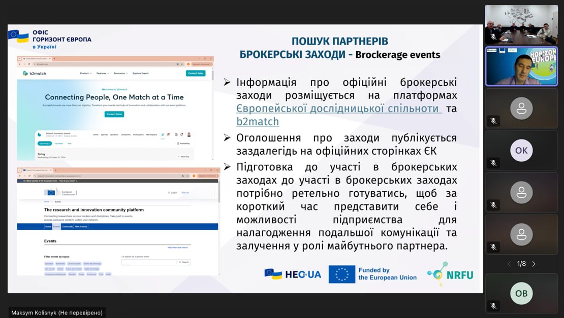 • Пошук партнерів для реалізації проєктів, презентований Наталією Черновою, кандидатом економічних наук, доцентом, керівником відділу міжнародних зв’язків.