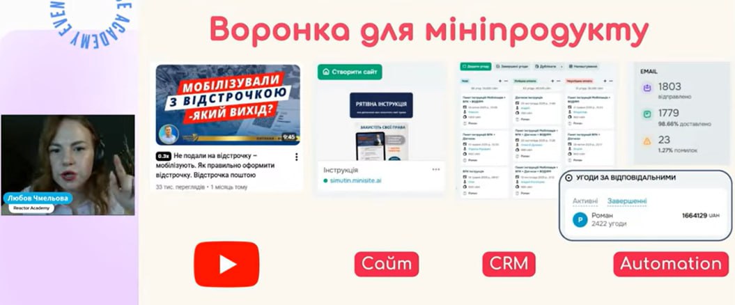 • побудову воронки продажів на основі YouTube та email-маркетингу: кейси й алгоритми;