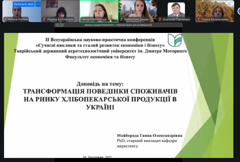 11 грудня 2025 року на факультеті економіки та бізнесу Таврійського державного агротехнологічного університету імені Дмитра Моторного відбулася ІІ Всеукраїнська науково-практична конференція «Сучасні виклики та сталий розвиток економіки і бізнесу». Захід проходив у дистанційному форматі та об’єднав понад 200 учасників з різних регіонів України, серед яких були науковці, викладачі, аспіранти та здобувачі вищої освіти.