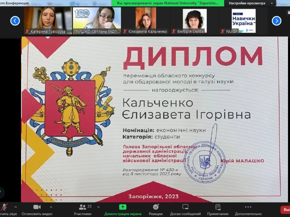 За результатами засідань профільної комісії в Запоріжжі підбили підсумки та визначили переможців конкурсу. Серед переможців – студентка спеціальності маркетинг Кальченко Єлизавета, робота якої стала кращою в номінації «Економічні науки». Керівник наукової роботи – к.е.н., доцент кафедри маркетингу Шквиря Наталя.