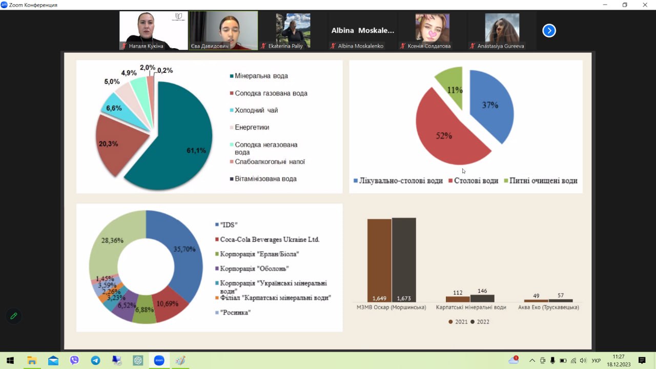 У першому семестрі 2023-2024 н.р. у студентському науковому гуртку працювало 7 здобувачів освіти ОС «Бакалавр» спеціальностей 075 «Маркетинг» та 241 «Готельно-ресторанна справа». Кожний учасник гуртка досліджував окремий ринок харчових продуктів, робив аналіз макро- та мікросередовища підприємств на ринку, оцінював трендові, сезонні та випадкові чинники діяльності підприємств на ринках.