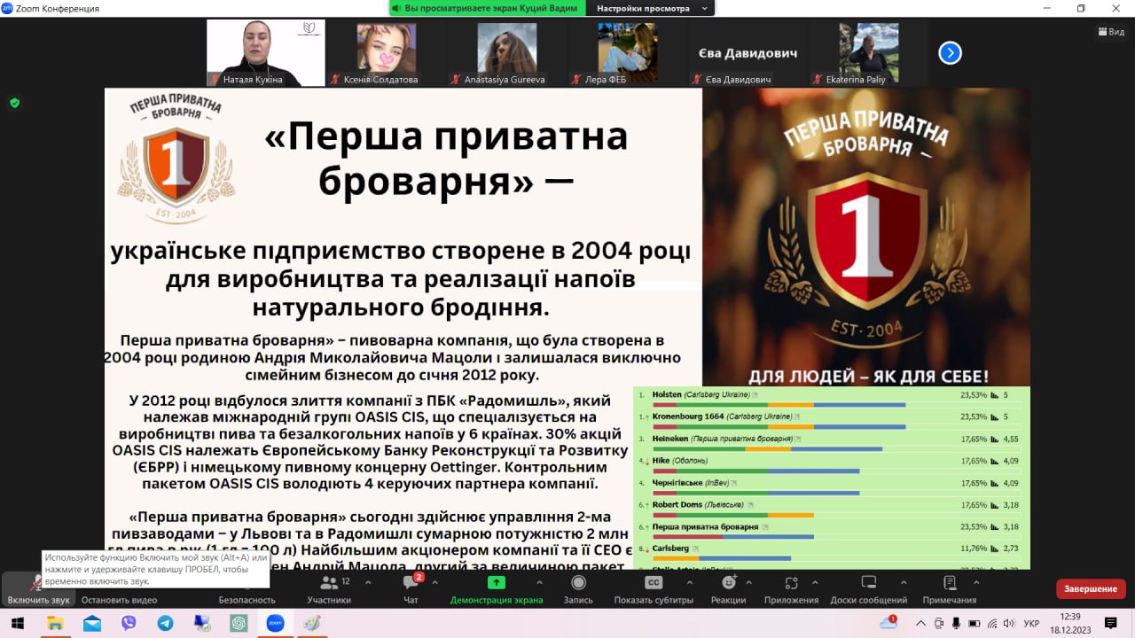 На фінальній зустрічі кожний студент презентував результати свого дослідження ринку, визначав сучасні проблеми для функціонування підприємств, формував пропозиції вирішення проблем та реалізації можливостей.