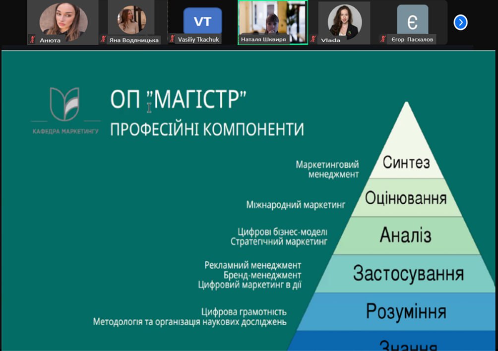 На заході було обговорено ключові компетенції, які отримують здобувачі вищої освіти на кожному рівні, зокрема: основи маркетингу та діджитал-технологій на бакалавраті, розширене вивчення стратегій та цифровізації на магістерській програмі, а також можливості для науково-дослідної діяльності на рівні PhD. Презентація стала важливим етапом у підготовці здобувачів вищої освіти перших курсів навчання до вимог ринку праці та сприяла обміну досвідом між здобувачами освіти та викладачами.