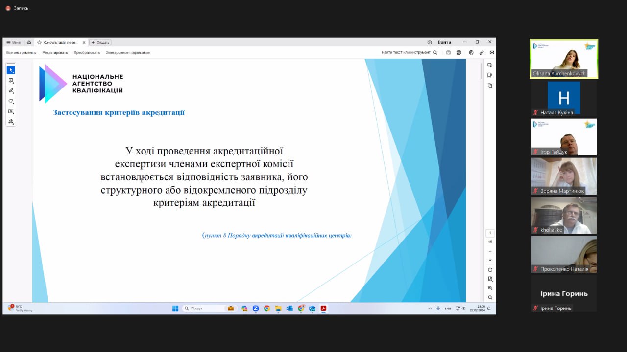 В.о. завідувача кафедри пройшла курс семінарів для кандидатів у експерти з акредитації кваліфікаційних центрів та підсумкове оцінювання, яке складалося з двох етапів – виконання тестового та практичного завдання.