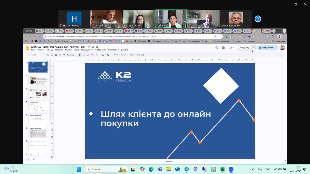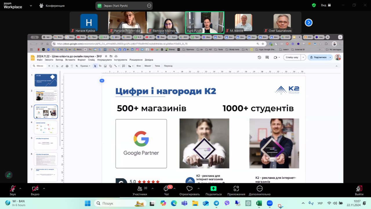 22 листопада 2024 року викладачі та здобувачі освіти кафедри маркетингу долучилися до тренінгу засновника і директора компанії «К2-реклама інтернет-магазинів» Юрія Пирча, який організувала кафедра управління персоналом і маркетингу ЗНУ. Головна тема тренінгу — побудова ефективного шляху клієнта до здійснення онлайн-покупки, аналіз конверсій та покращення ефективності рекламних кампаній.