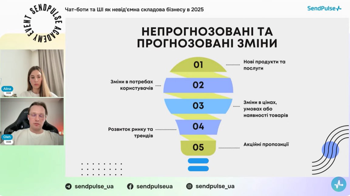 – Як забезпечити актуальність відповідей чат-бота, враховуючи зміни у бізнесі (ціни, акції, нові продукти).