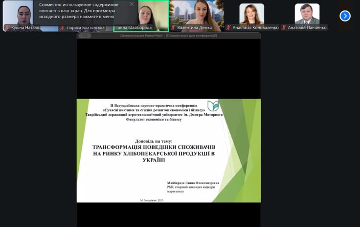 11 грудня 2025 року в межах ІІ Всеукраїнської науково-практичної конференції «Сучасні виклики та сталий розвиток економіки і бізнесу», що відбулася на факультеті економіки та бізнесу Таврійського державного агротехнологічного університету імені Дмитра Моторного, з науковою доповіддю виступила Ганна МАЙДОРОДА – PhD, старший викладач кафедри маркетингу .
