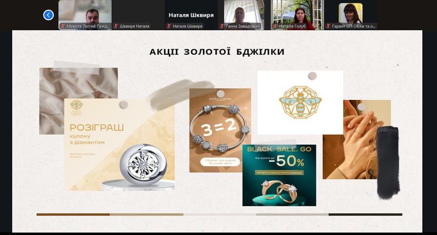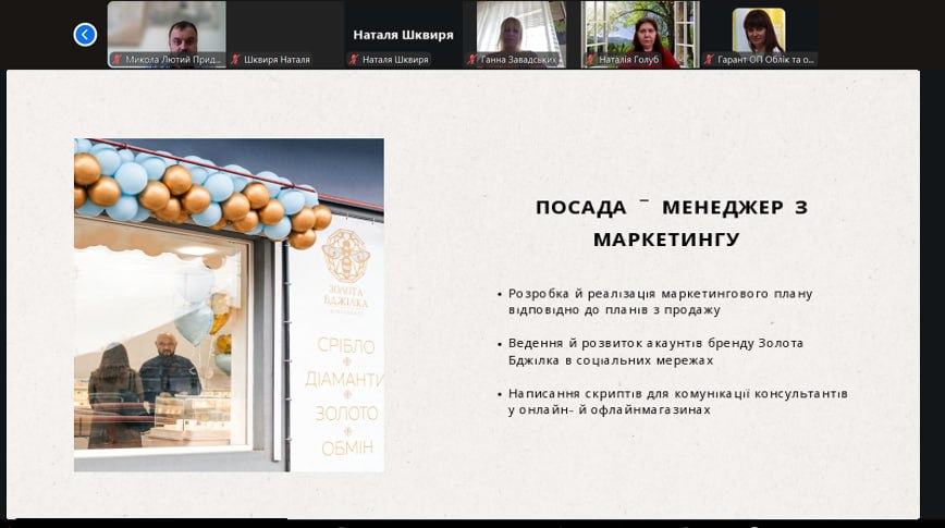 Окрему увагу він приділив розробці візуального контенту, прикладам рекламних матеріалів та аналізу інструментів, що застосовуються для комунікації з клієнтами. У презентації здобувач також висвітлив історію та діяльність компанії «Золота Бджілка», яка у 2026 році відзначатиме 20-річчя своєї роботи.