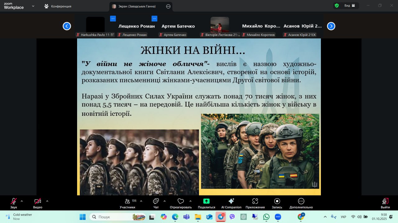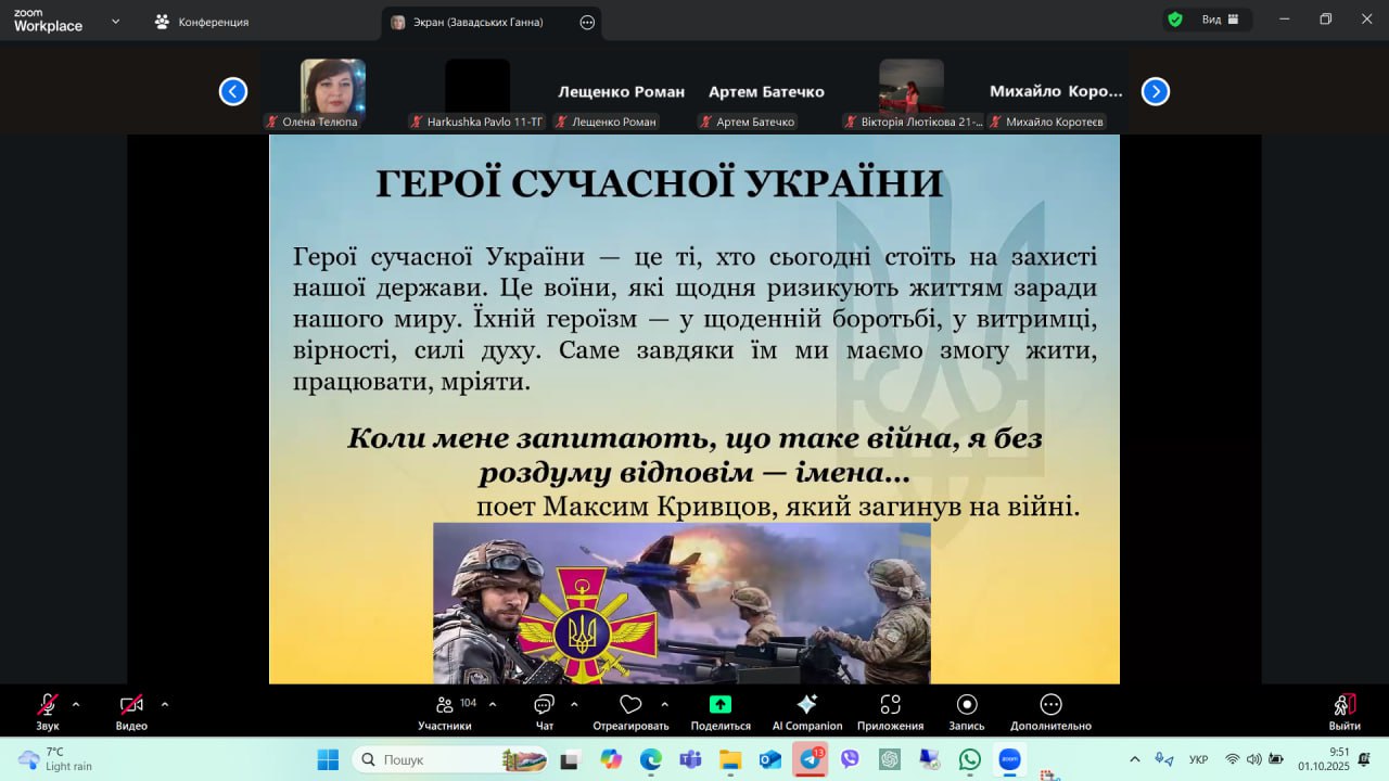 Кураторська година сприяла формуванню у здобувачів усвідомлення важливості громадянської позиції, поваги до захисників і захисниць та розуміння того, що свобода й мир завжди мають високу ціну.