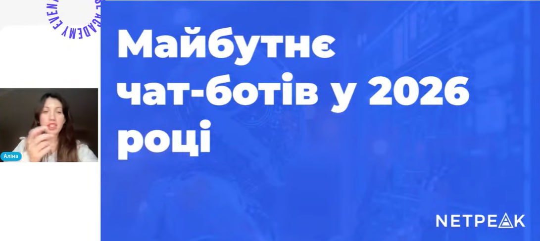 Здобувачі вищої освіти та викладачі кафедри маркетингу відвідали онлайн-семінар «Майбутнє чат-ботів у 2026 році», спікеркою якого виступила Аліна ПШЕНИЧНИКОВА, Head of Marketing & Product at Netpeak. Захід був присвячений аналізу майбутніх тенденцій розвитку чат-ботів та впливу нових технологій на підходи до автоматизації комунікацій у бізнесі.