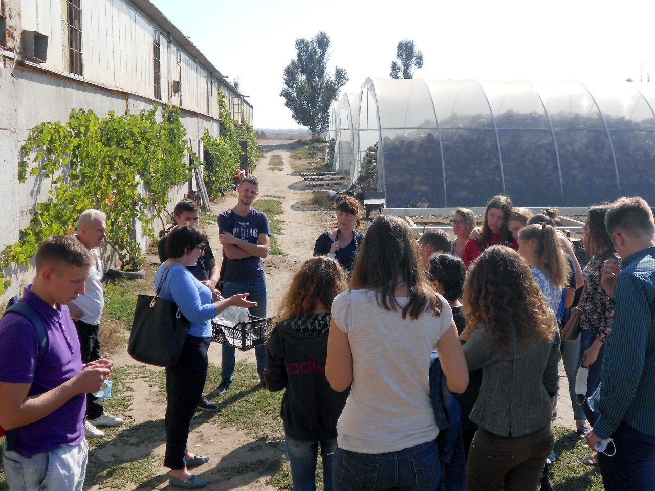 На місці нас люб’язно зустріла менеджер підприємства, яка виконала роль екскурсовода. При вході на територію виробничого приміщення на нас чекав власник. Доволі цікаво було дізнатися про особливості підготовки сировини, що служить середовищем для росту майбутніх грибів. Студенти дізналися, що даний процес є досить серйозним з точки зору обробки матеріалу від різноманітних шкідників та мікроорганізмів. Даний процес займає близько 3-х днів та здійснюється за допомогою спеціально підготованих камер, які щільно закриваються та мають доступ до гарячої пари, що надходить від величезних водяних баків. Зворушило ставлення до підприємства самого власника, адже баки змайстрував він сам. На щастя студентам випала нагода поглянути на заповнення мішків поживною сировиною з міцелієм, який в подальшому перетвориться на гливи.