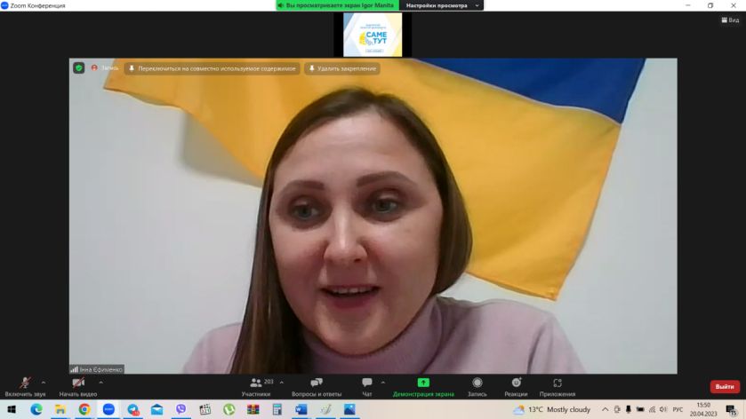 Тетяна Несват, голова громадської організації “Піпл.юа”, координаторка програми «Мріємо та діємо» (IREX) та Віктор Майоров, головний спеціаліст управління культури та молоді ММР ЗО, засновник проекту «Подкаст на відстані. З Мелітополем у серці» представили учасникам заходу модуль «Розвиток молоді: вплив молоді на відбудову країни».