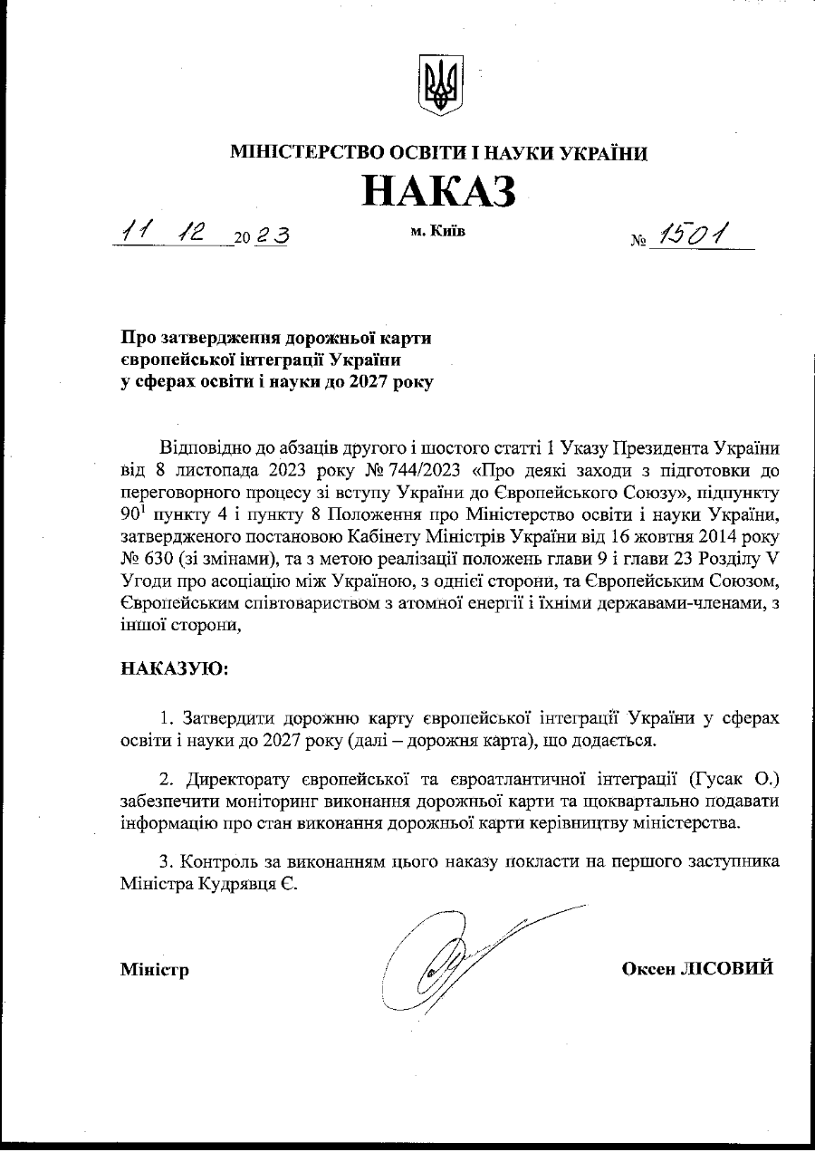 МОН оприлюднило дорожню карту європейської інтеграції у сферах освіти і науки до 2027 року