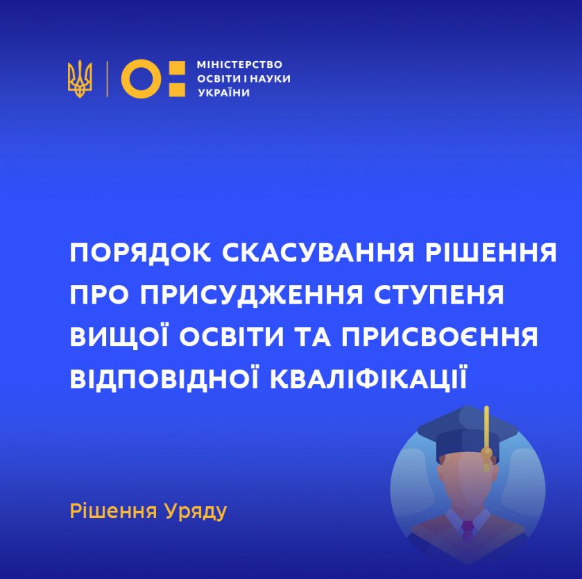 26 серпня 2021 року Кабінет Міністрів ухвалив Порядок скасування рішення про присудження ступеня вищої освіти та присвоєння відповідної кваліфікації.