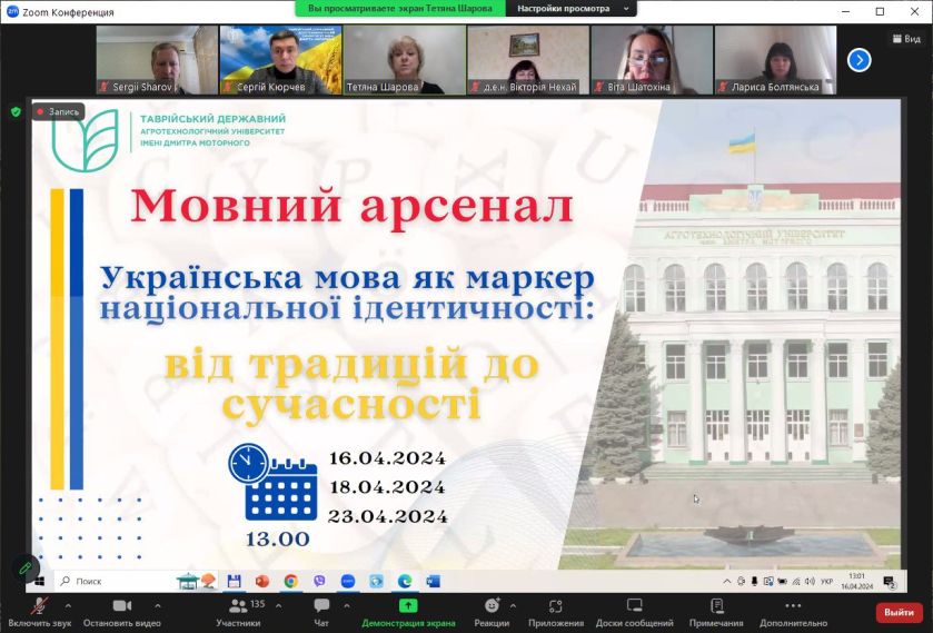 16 квітня 2024 р. у Таврійському державному агротехнологічному університеті імені Дмитра Моторного відбулось урочисте відкриття Мовного арсеналу «Українська мова як маркер національної ідентичності: від традицій до сучасності». Захід організований мовним омбудсменом університету Тетяною ШАРОВОЮ за підтримки ректора ТДАТУ Сергія Кюрчева.