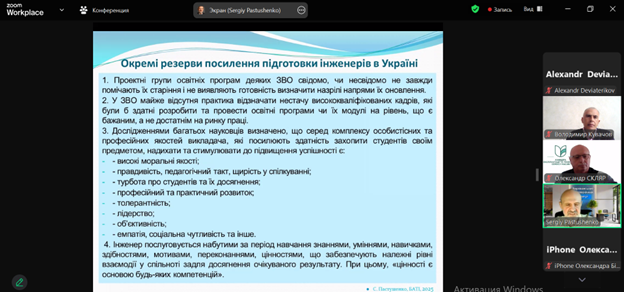 Жвавий інтерес учасників викликала завершальна частина заходу, присвячена запитанням до спікера. Дискусія, що виникла, засвідчила глибоку зацікавленість академічної спільноти у вдосконаленні освітніх стандартів і готовність до конструктивного обговорення перспективних змін.