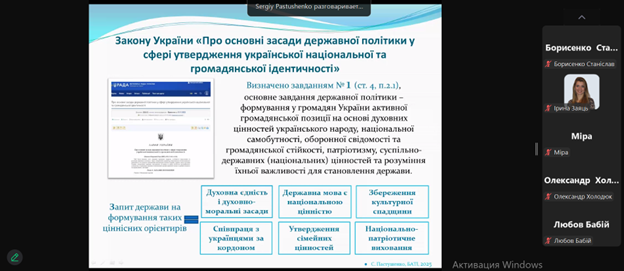 - ключові засади державної політики у сфері формування української національної та громадянської ідентичності;