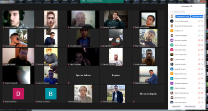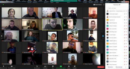 В умовах поширення коронавірусної хвороби в Запорізькій області особливо актуальними є проведення зустрічей здобувачів вищої освіти, використовуючи онлайн-платформи. Одна з відеоконференцій студентів 21МБГМ групи (магістрантів ОПП Галузеве машинобудування) з керівництвом факультету МТФ відбулась 1.12.2020 р. Крім студентів на зустрічі були присутні декан ф-ту МТФ Сергій Кюрчев, заступники декана Валентина Верхоланцева і Надія Паляничка, завідувач каф. ОПХВ ім. проф. Ф.Ю. Ялпачика і куратор академічної групи Кирило Самойчук (всього 33 учасника).