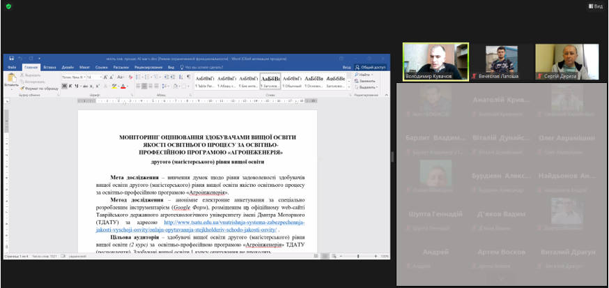 В процесі зустрічі гарант обговорив зі стейкхолдерами пропозиції щодо підвищення якості освітньої діяльності за даною освітньою програмою. Зокрема, з метою підвищення якості освітнього процесу за освітньою програмою «Агроінженерія» та врахування думок здобувачів вищої освіти усім науково-педагогічним працівникам, залученим до викладання на освітній програмі «Агроінженерія» рекомендується: