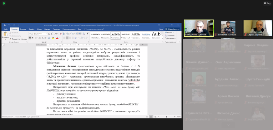 За результатами зустрічі прийнято рішення про подальше обговорення результатів опитувань стейкхолдерів на засіданнях випускових кафедр з метою надання пропозицій щодо підвищення якості освітньої діяльності за даною освітньою програмою, на засіданнях робочих груп та з ухваленням на вченій раді факультету для впровадження в освітній процес.