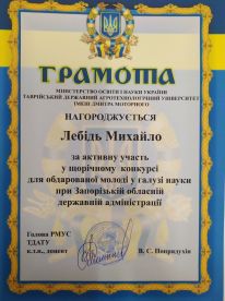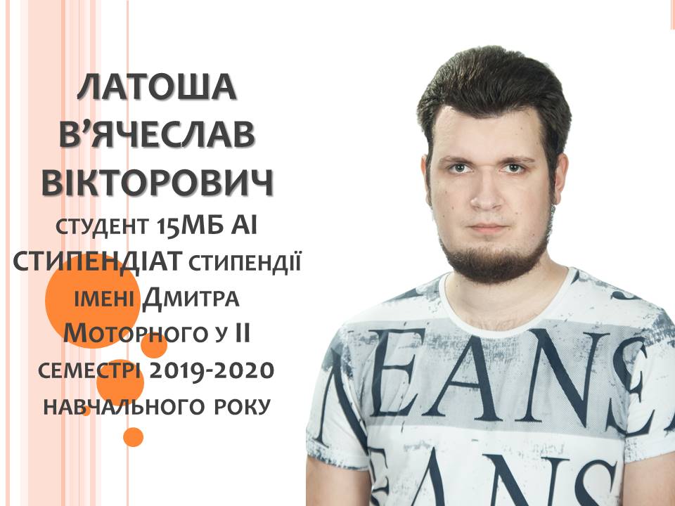 Стипендіат стипендії імені Дмитра Моторного у ІІ семестрі 2019-2020 навчального року |