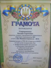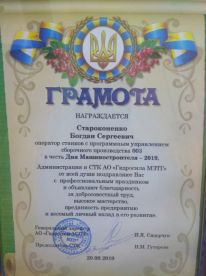 Стипендіат стипендії імені Дмитра Моторного у І семестрі 2019-2020 навчального року |