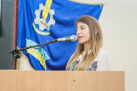 Голова студентської ради Ліля Пінжаєва приєдналася до привітань і відзначила випускників, які відмінно навчалися та мали активну життєву позицію почесними грамотами та подарунками.