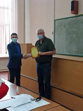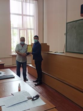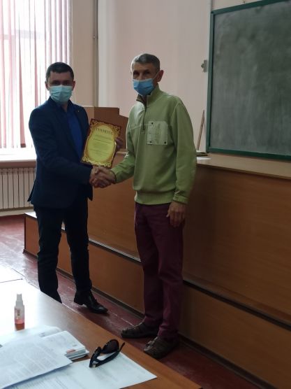 Розпочав засідання Сергій Володимирович з приємної новини, а саме з вручення почесних грамот Департаменту освіти і науки Запорізької облдержадміністрації за багаторічну сумлінну працю, високий професіоналізм, відданість своїй справі в.о. завідувачу кафедри технічного сервісу та систем в АПК, к.т.н., доценту Андрію СМЄЛОВУ, завідувачу кафедри технології конструкційних матеріалів, к.т.н., доценту Олегу ПЕНЬОВУ, к.т.н., доценту кафедри мехатронних систем та транспортних технологій Олегу БОЛТЯНСЬКОМУ, к.т.н., доценту кафедри сільськогосподарських машин Віктору ДЯДІ. А також сертифікат учасника ІІ туру Всеукраїнського конкурсу студентів наукових робіт студентам механіко-технологічного факультету Кирилу ПОКРОВЕНКО та Кирилу СОЛОВЙОВУ.