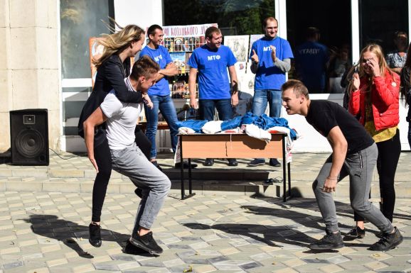 Колектив ЦКіД за підтримки студентської ради університету потішили глядачів змаганнями у форматі конкурсно-ігрової програми. З привітальним словом до всіх присутніх звернувся перший проректор університету, кандидат технічних наук, професор Скляр Олександр Григорович. Після урочистої частини розпочалося найцікавіше. Ведучі запросили на імпровізовану сцену дві команди по п’ять молодиків, студентів університету з різних факультетів. Змагалися учасники в чотирьох конкурсах: на кмітливість, силу, швидкість і винахідливість. Звісно перемога дісталась найкращим, але без подарунків ніхто не залишився.