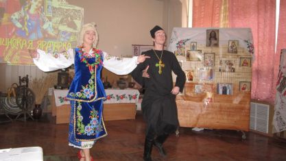 Учасники театральної студії «Міст» – Алія Айбетова, Данило Гайдаєнко та масовка: учасники ансамблю «Юність» представили уривок з повісті «Вій», (керівник студії ЦКІД Віталіна Нікітіна).