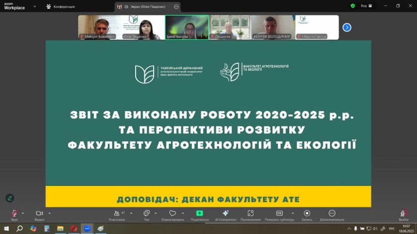 18 червня 2025 року відбулися збори трудового колективу та студентів факультету агротехнологій та екології Таврійського державного агротехнологічного університету імені Дмитра Моторного. Вони проходили в онлайн форматі на платформі Zoom. Для участі у роботі конференції зареєструвалися 36 делегатів.