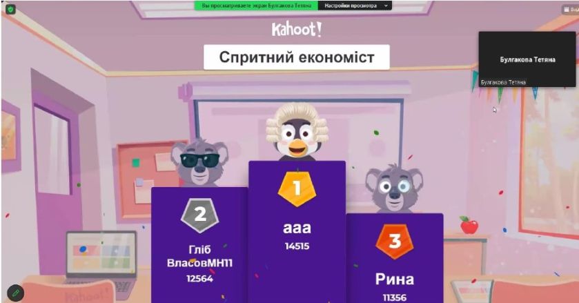 Сама гра проходила на платформах Zoom та Kahoot. Для студентів була розроблена спеціальна вікторина з питаннями різного рівня складності, спрямованими на виявлення їх економічного потенціалу і просто для розвантаження мозку від повсякденних турбот та навчання.