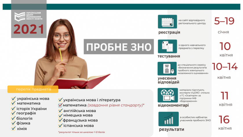 Пробне зовнішнє незалежне оцінювання відбудеться 10 квітня. В день проведення тестування кожен учасник зможе скласти тест з одного навчального предмета, а також додатково завантажити тестові зошити з будь-яких навчальних предметів та пройти тестування онлайн.