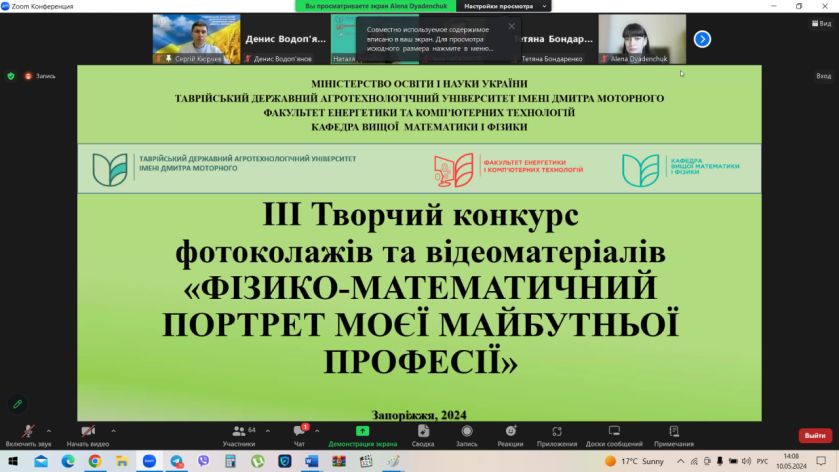 10 травня у Таврійському державному агротехнологічному університеті імені Дмитра Моторного відбулось нагородження переможців ІІІ Творчого конкурсу фотоколажів та відеоматеріалів «Фізико-математичний портрет моєї майбутньої професії».